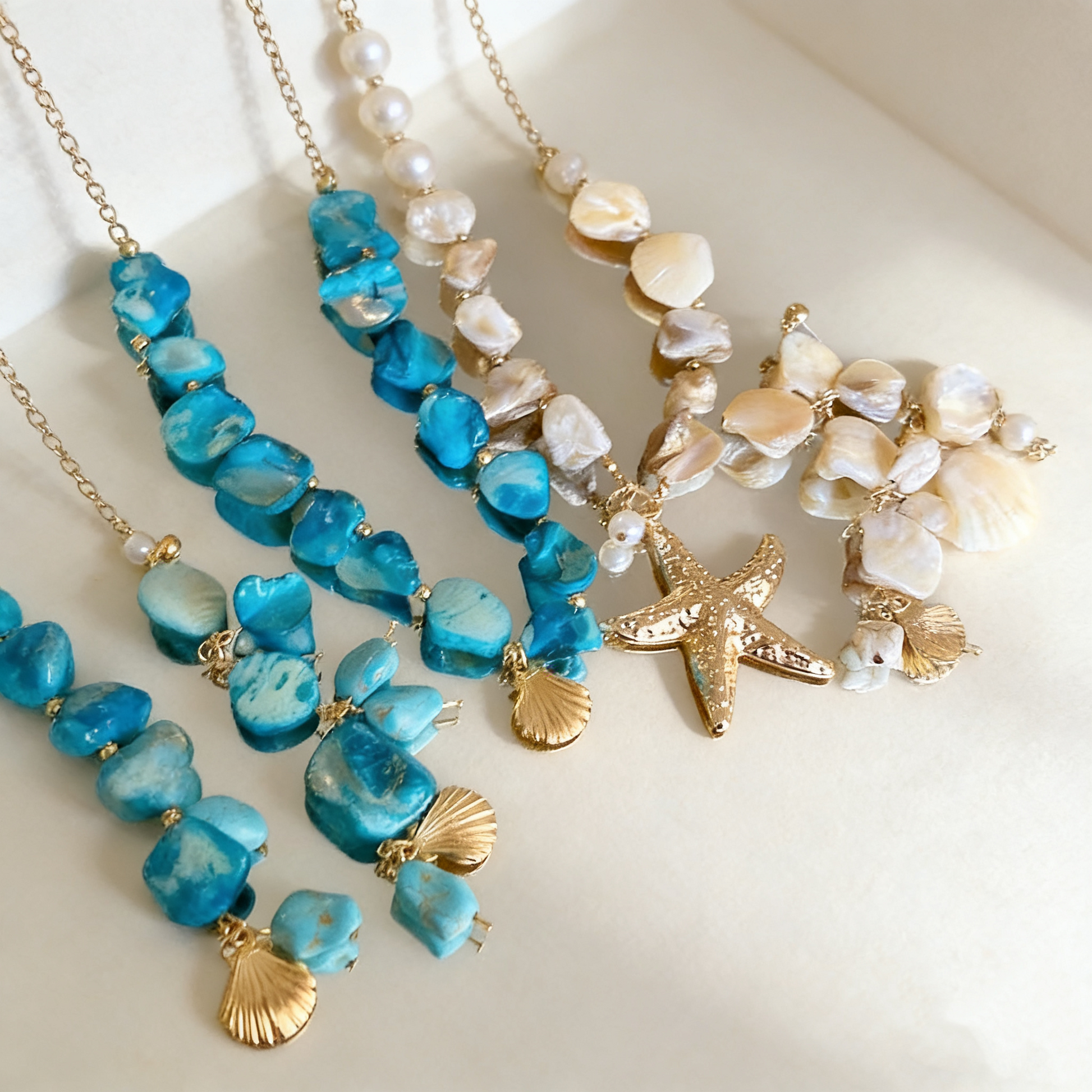 Finished with copper charms that add warmth and contrast without overpowering the shell’s natural beauty.