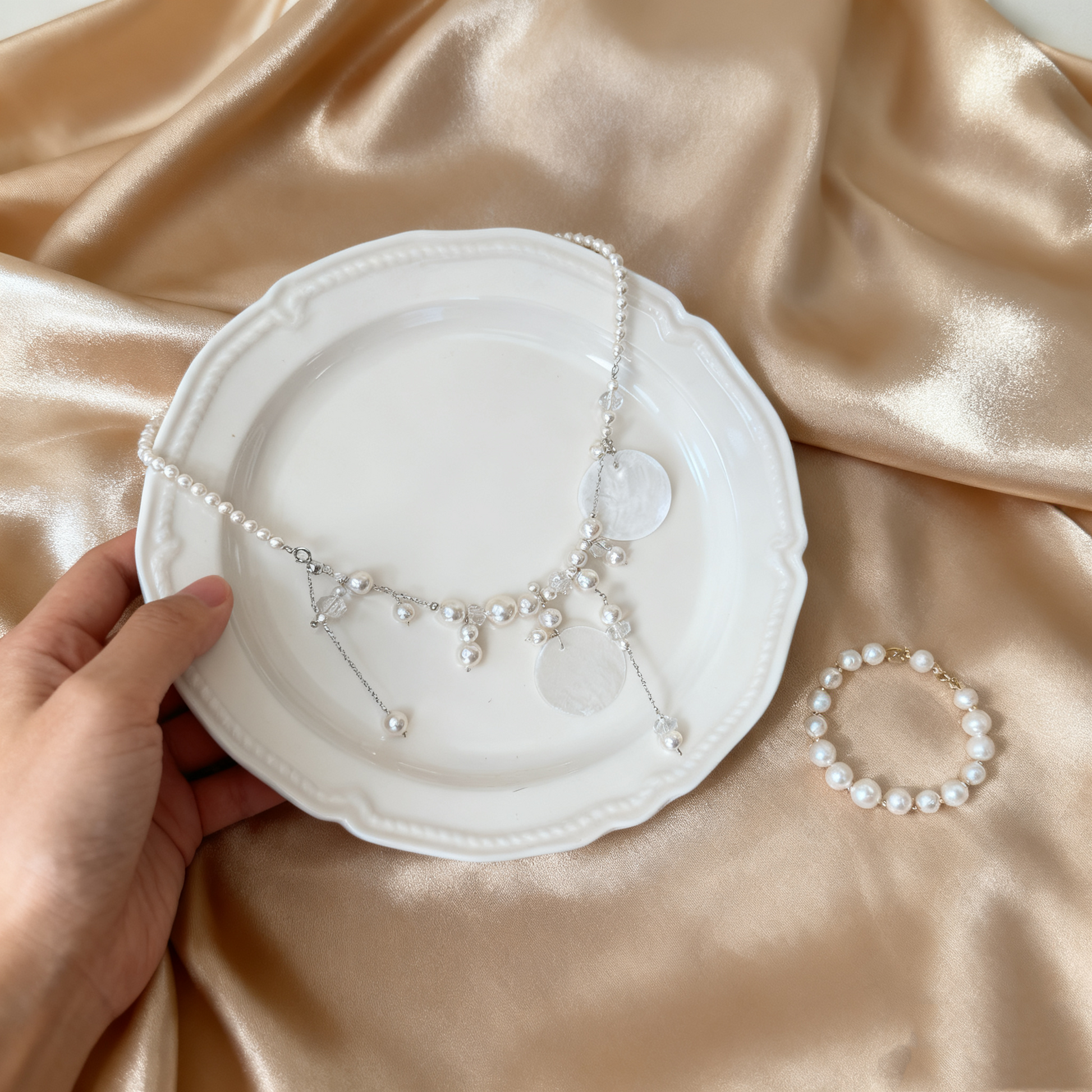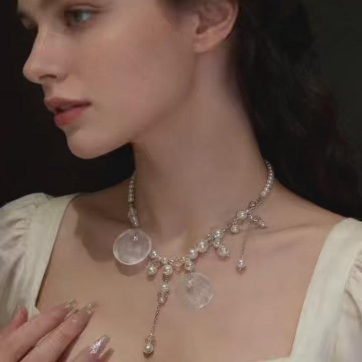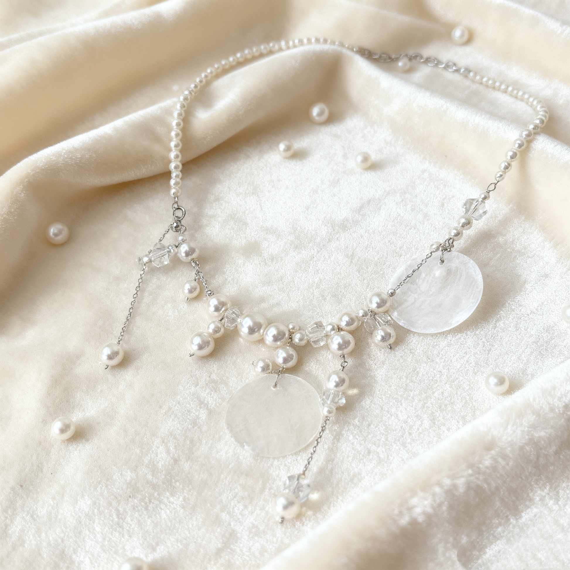 A luminous necklace designed to capture softness, light, and quiet sophistication.