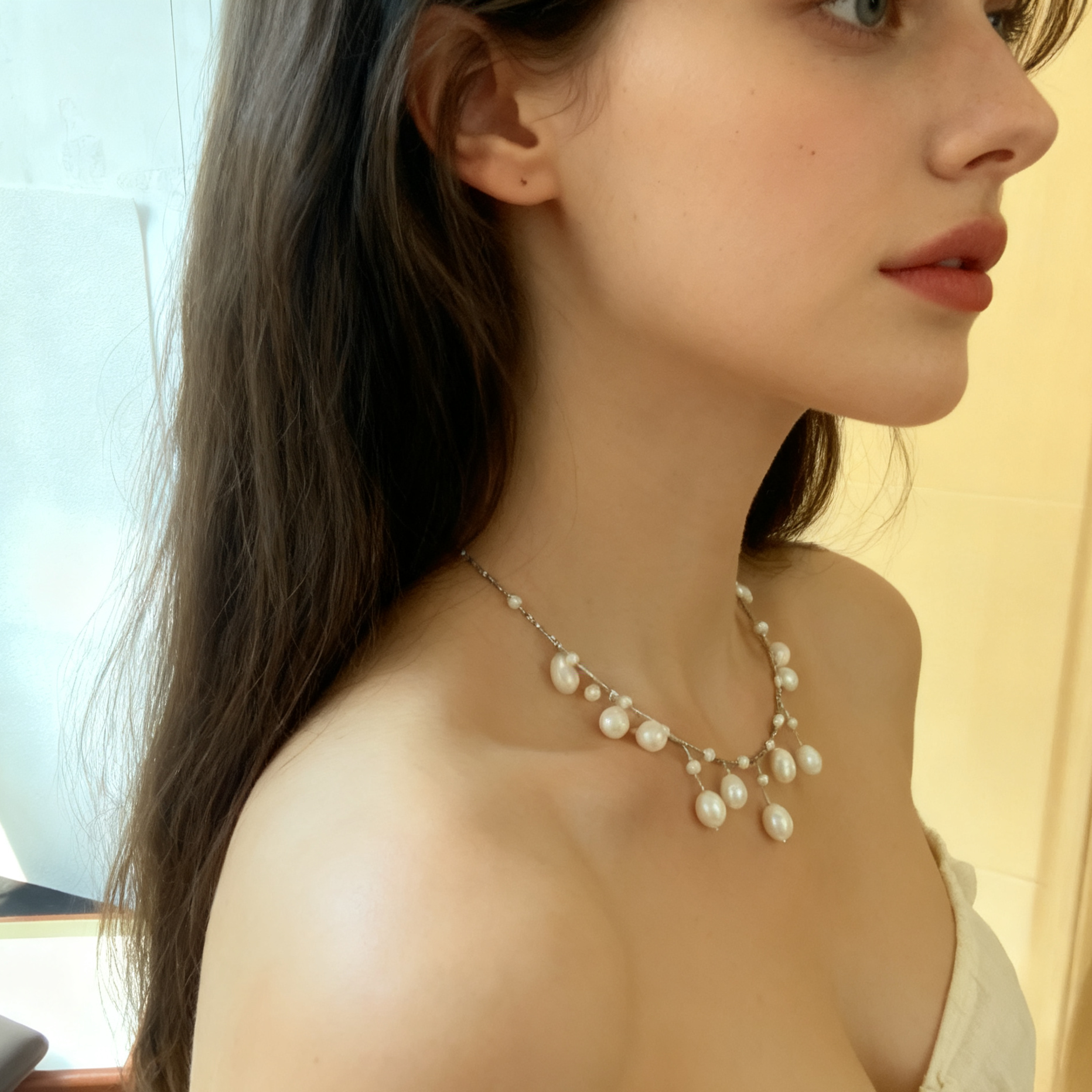 A refined necklace handcrafted with natural pearls, designed with subtle pearl drops for an elegant, everyday look.