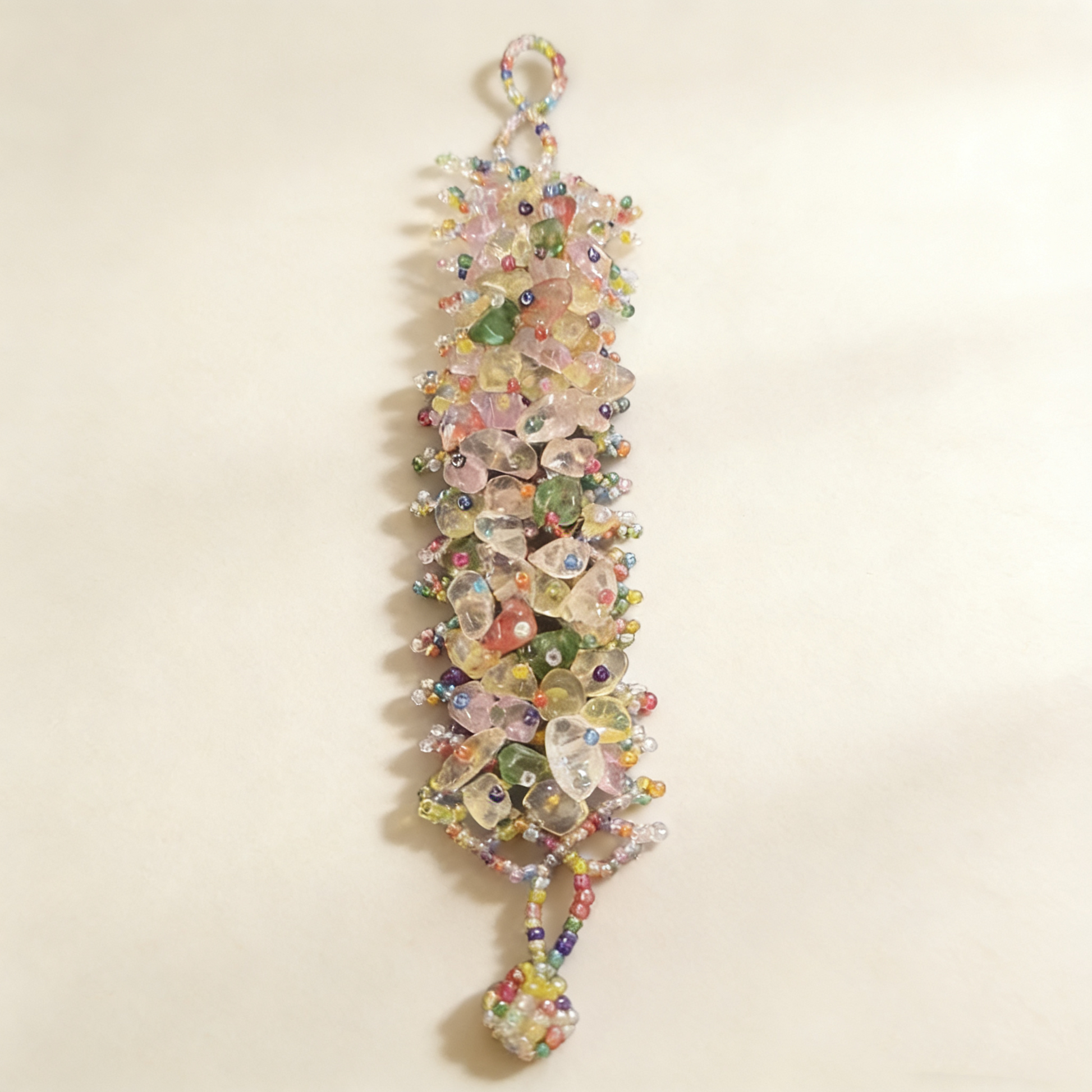 A bold yet organic bracelet handcrafted with natural crystal chips, bringing texture, color, and artisanal character to your everyday style.