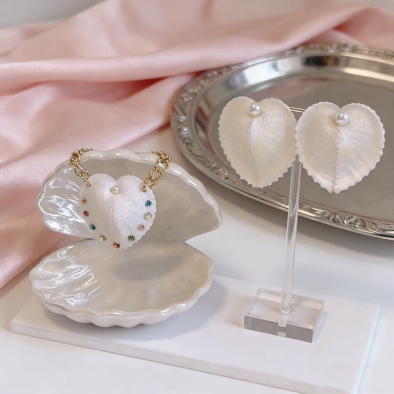1. Natural shell heart pendant, each piece featuring organic texture and gentle luster