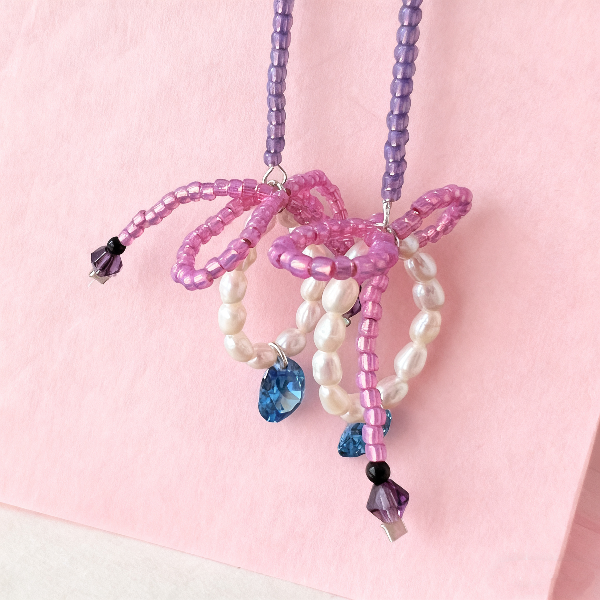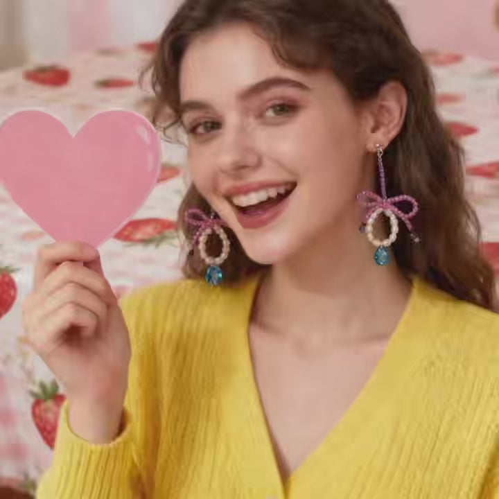 Playful, romantic, and full of soft detail, these beaded bow earrings are designed to capture a gentle, youthful charm.